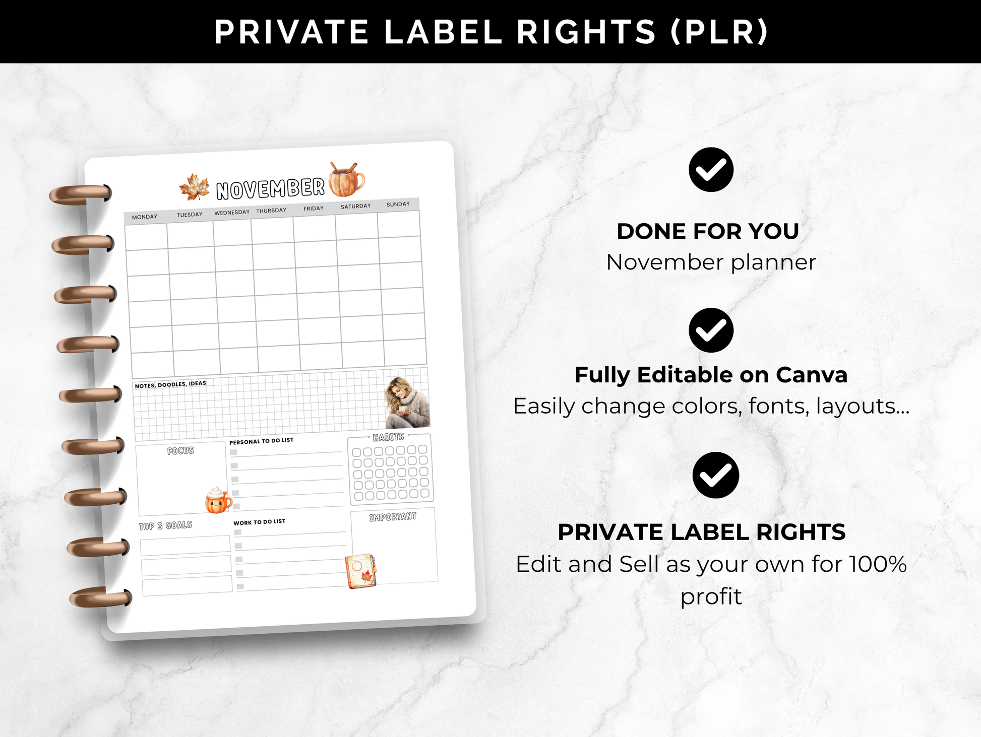 This editable Canva template includes everything you need to plan your month, stay on top of daily tasks, and reflect on your goals. Whether you’re a planner lover or an entrepreneur building your digital product business, this bundle is designed to help you create, customize, and sell your own branded planner effortlessly.
